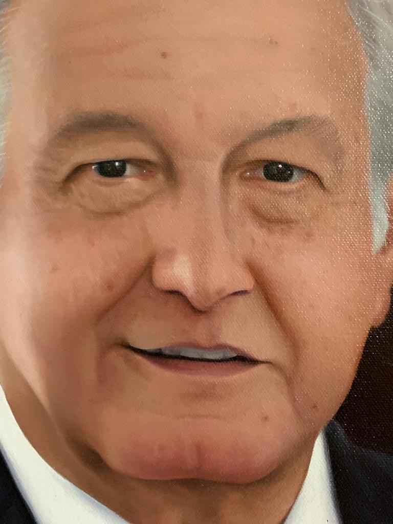 En conclusión, esta pieza reafirma la maestría artística de Sergio González, consolidándose como un testimonio visual de indudable valor estético e histórico. La pintura logra inmortalizar al personaje con una técnica depurada que honra la tradición del retrato presidencial, pero despojándola de la rigidez para ofrecer una imagen más humana y accesible. Es una obra que perdurará como un documento fiel de una época, encapsulando la identidad de Andrés Manuel López Obrador con una nobleza plástica digna de los grandes maestros del realismo.