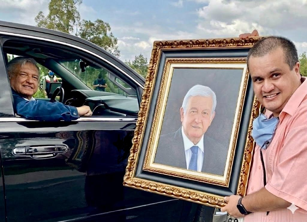 En el vasto y complejo panorama del arte figurativo contemporáneo, este retrato del maestro Sergio González se erige como una representación icónica que equilibra la fidelidad documental con la interpretación artística. La obra captura la efigie del licenciado Andrés Manuel López Obrador con un realismo técnico sobresaliente, donde la luz actúa como el elemento constructor principal. La iluminación, suave y difusa, modela el rostro con una naturalidad que evita el dramatismo excesivo, permitiendo que la fisonomía del mandatario emerja con claridad y verosimilitud. El pintor demuestra una capacidad notable para traducir la presencia física al lienzo, logrando que la mirada y los gestos faciales comuniquen una vitalidad inmediata.