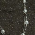 El orden visual de la obra descansa sobre una composición clásica de busto, donde la figura emerge con autoridad estética de un fondo en penumbra con matices caoba y rojizos, un recurso que potencia la luminosidad de la carnación y la sobriedad del atuendo. La paleta cromática es un estudio de contrastes refinados: el negro profundo de la vestimenta, salpicado por una textura sutil que sugiere un tejido de punto con destellos discretos, sirve de base para que resalten con fuerza las perlas de los aretes y el collar. González ha pintado estas joyas con una maestría particular, capturando el nácar y sus reflejos lechosos como puntos de luz que guían la mirada del espectador a través del lienzo.