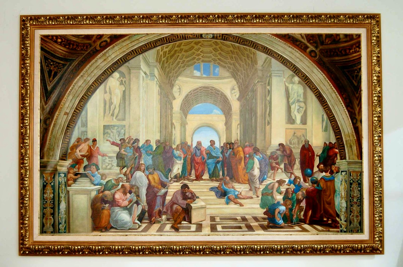 Finalmente, esta pieza se erige como un testimonio visual de incalculable valor estético, reafirmando la destreza de Sergio Gonzalez para orquestar composiciones de altísima complejidad narrativa y espacial. La réplica trasciende la categoría de copia para convertirse en una reactivación del legado renacentista, ejecutada con una fidelidad que honra la mano maestra de Rafael Sanzio. Es una obra que celebra el triunfo de la razón y el arte, consolidándose como una pieza de resistencia que demuestra que la majestad del clasicismo sigue vigente y vibrante bajo el pincel del artista moderno.