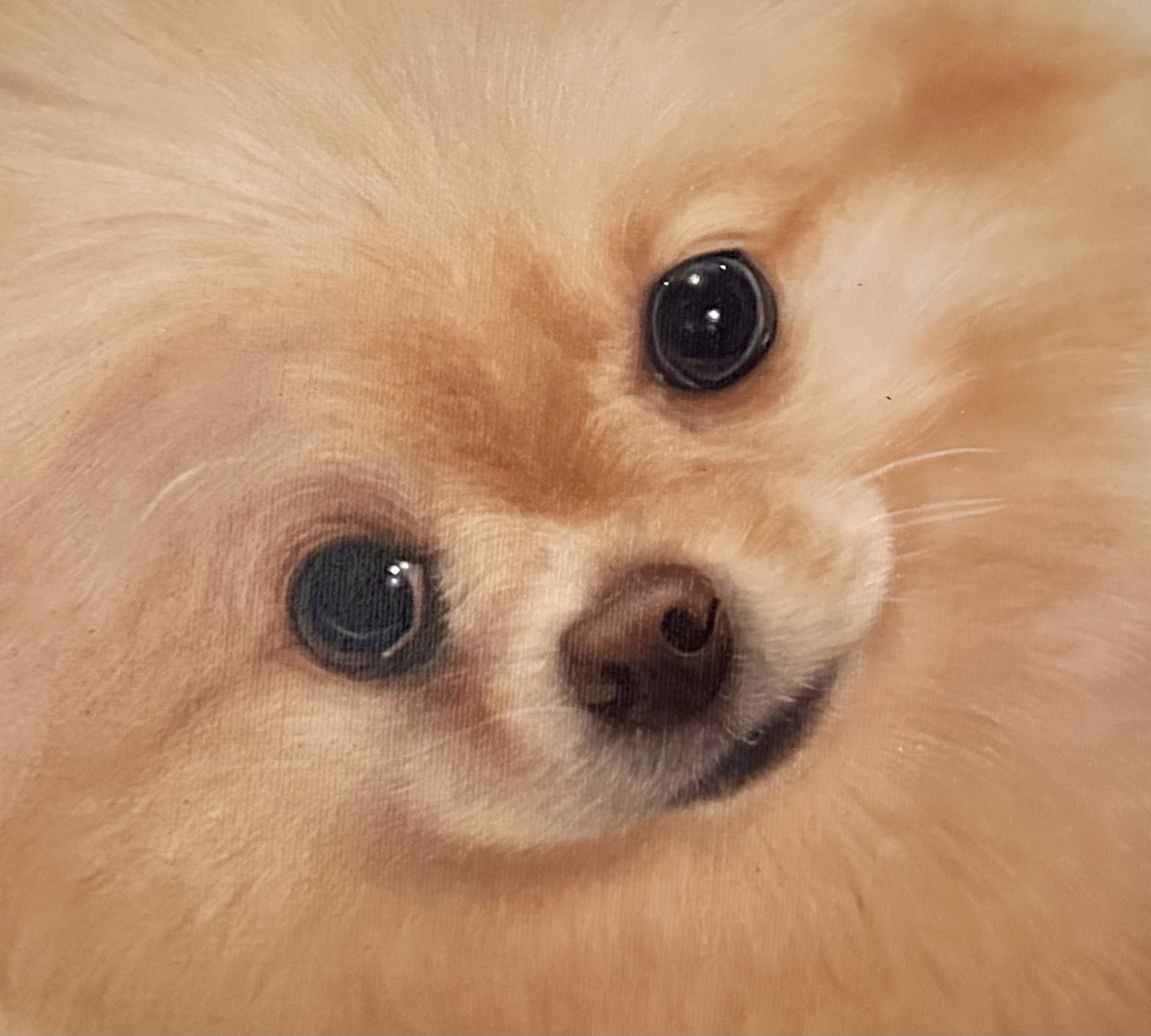 Psicológicamente, la obra es un estudio sobre la alegría y la afabilidad. La expresión de «Miel», con esa sutil curvatura en la boca que sugiere una sonrisa antropomórfica y la inclinación leve de la cabeza, transmite una personalidad vivaz, curiosa y profundamente empática. Hay una chispa de inteligencia y picardía en la mirada que el artista ha sabido capturar con precisión, dotando al retrato de un carácter magnético que irradia bienestar y compañía.